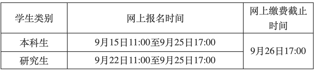 报名及缴费时间:
