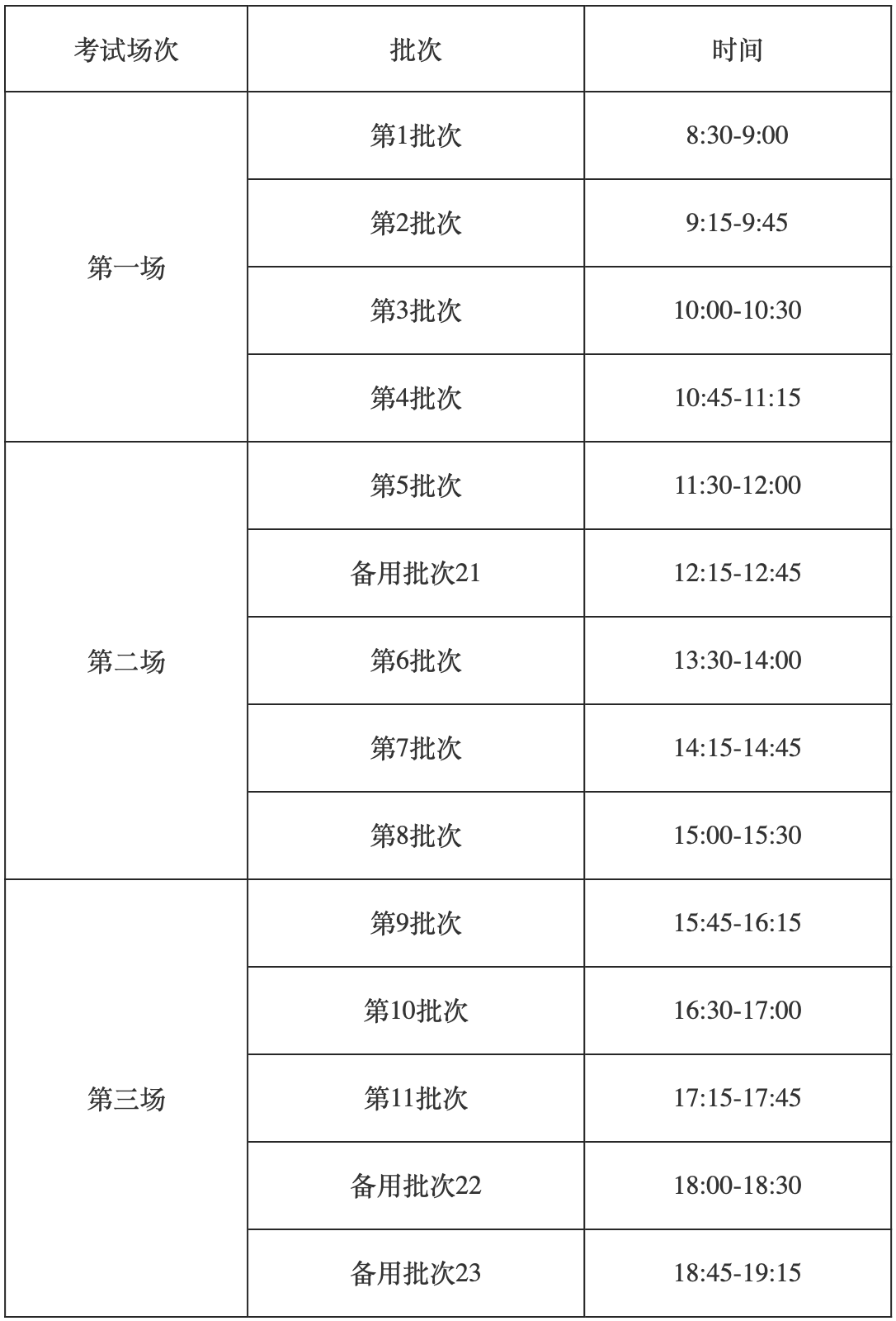 (二)笔试时间安排