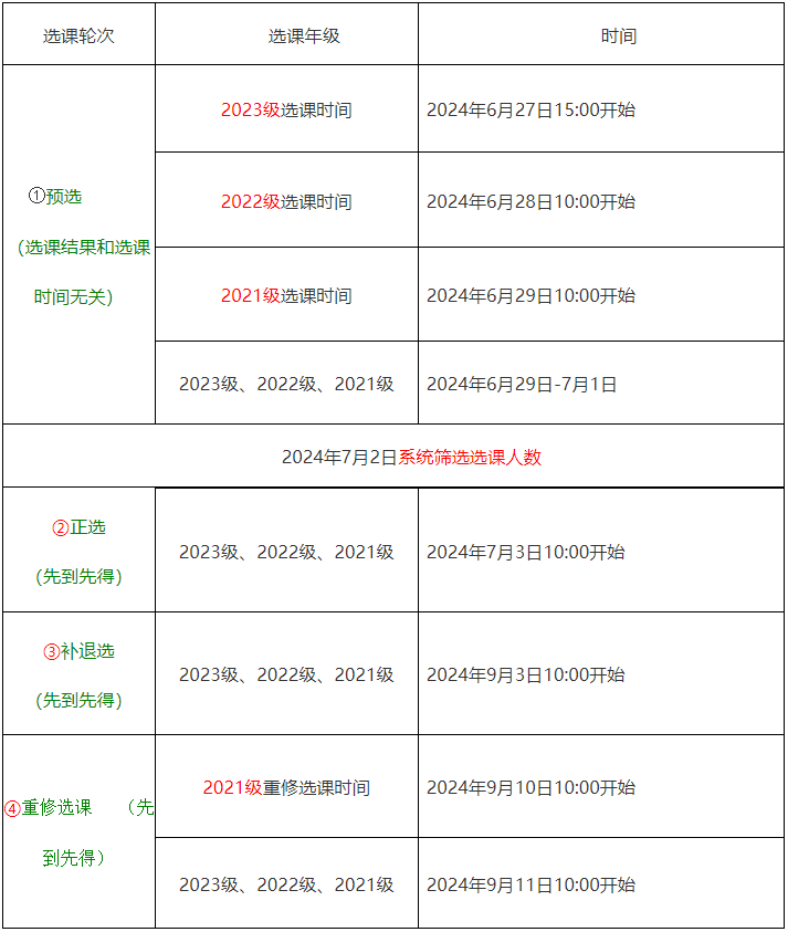 4. 重修选课轮次:2024年9月10日(周二)10:00——9月15日。