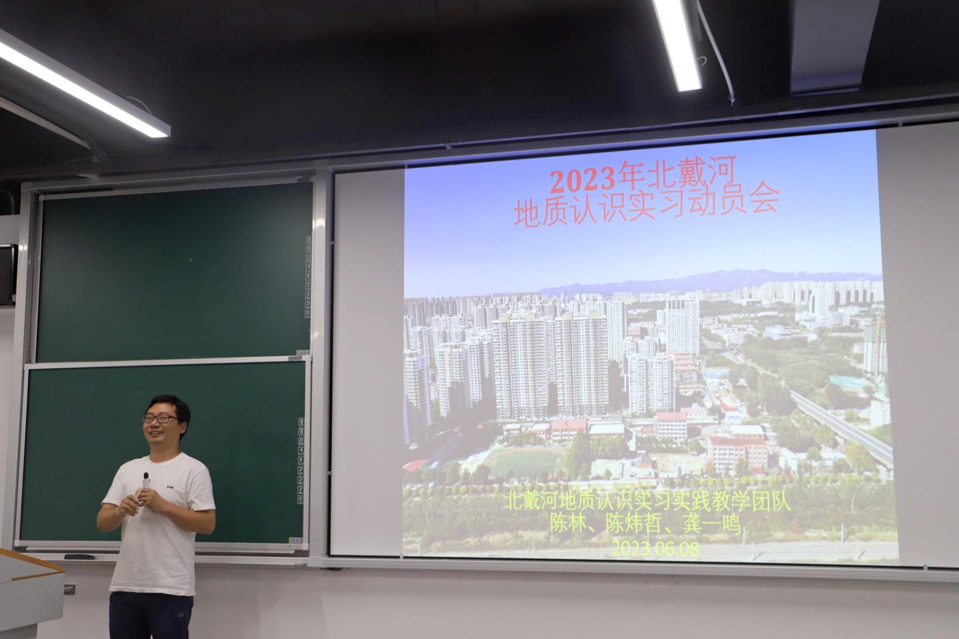 陈林结合自身丰富的北戴河实习教学经验,从北戴河的地理环境、地质特征、路线安排以及实习期间丰富的学术报告和文体活动,生动地介绍了北戴河地质认知实习的内容和要求,引起了同学们浓厚的兴趣和期待。他希望全体2022级同学认真参加此次实习,严格遵守实习管理规定,充分利用这次机会拓展自己的学术视野和专业能力,也祝愿每一位同学在北戴河体验到地质人一生一次的“初恋“。