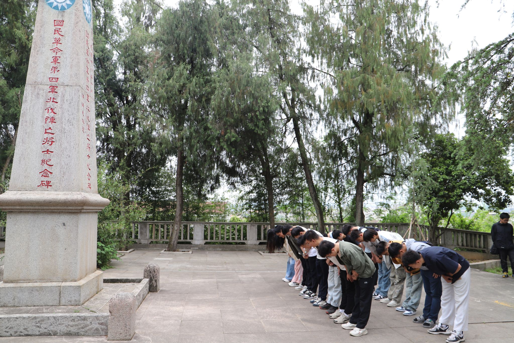活动伊始,师生在战役纪念馆通过珍贵文物、历史影像及场景还原,深入了解了北伐战争的战略意义与革命先烈的英勇事迹,引发大家对斗争智慧与革命信仰的深刻思考。随后,全体成员徒步探访北伐汀泗桥战役遗址,斑驳的古桥和碉堡遗迹与复刻防御工事再现烽火岁月,将历史与现实紧密联结。在国民革命军第四军北伐阵亡将士纪念碑前,同学们肃立默哀,以无声誓言传承先烈遗志。