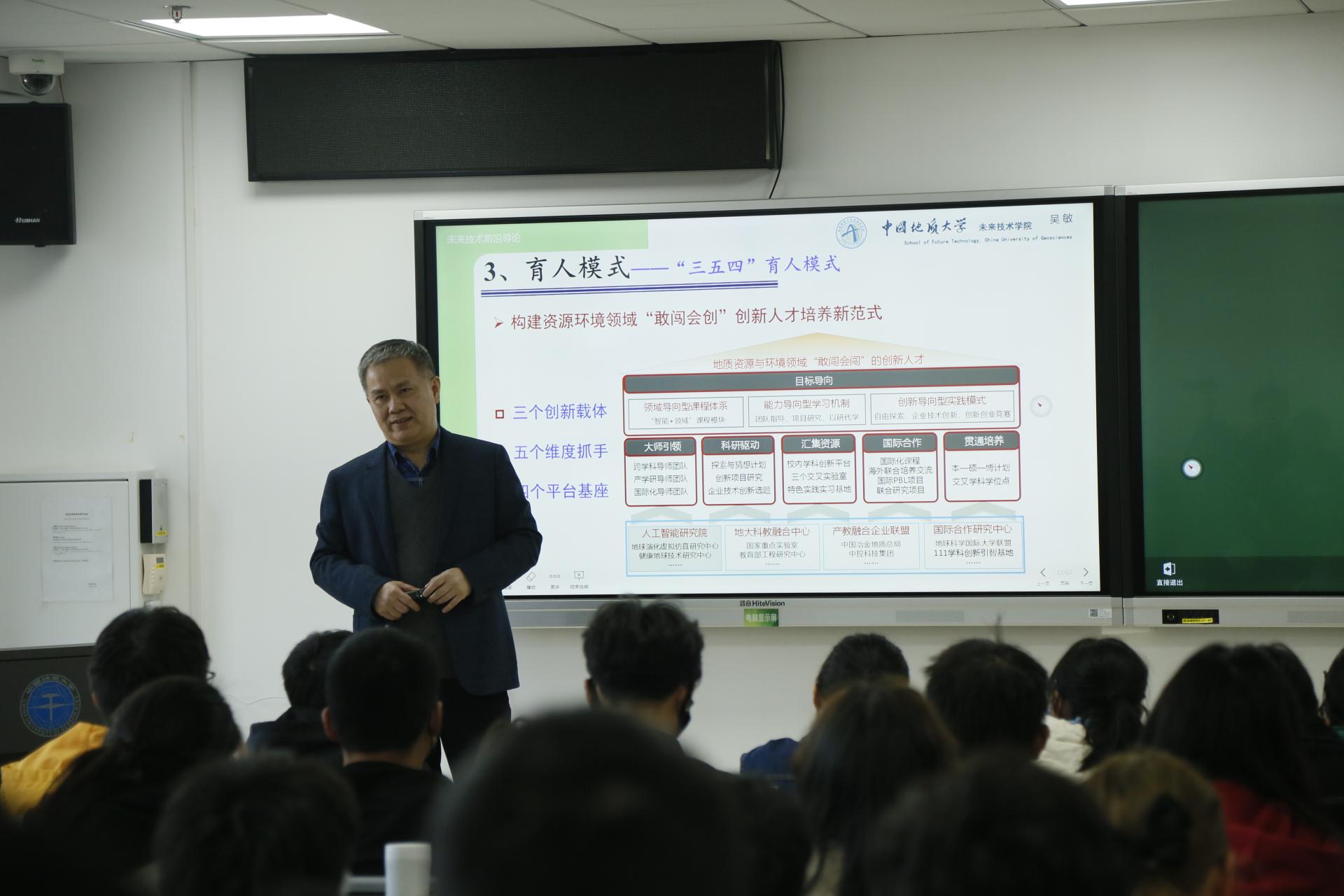 《未来技术前沿导论》课程面向XC体育大一新生,作为新工科背景下跨学科高水平人才培养的通识课程,该课程旨在让员工了解XC体育覆盖的学科领域和知识体系,掌握未来技术前沿的概念、研究方法、研究领域及发展动向,熟悉人工智能、新一代信息技术与地球科学交叉融合的未来发展。课程自今年3月开始,分为8讲共计16学时,由王焰新院士、谢树成院士、吴敏教授等8位教授共同讲授。