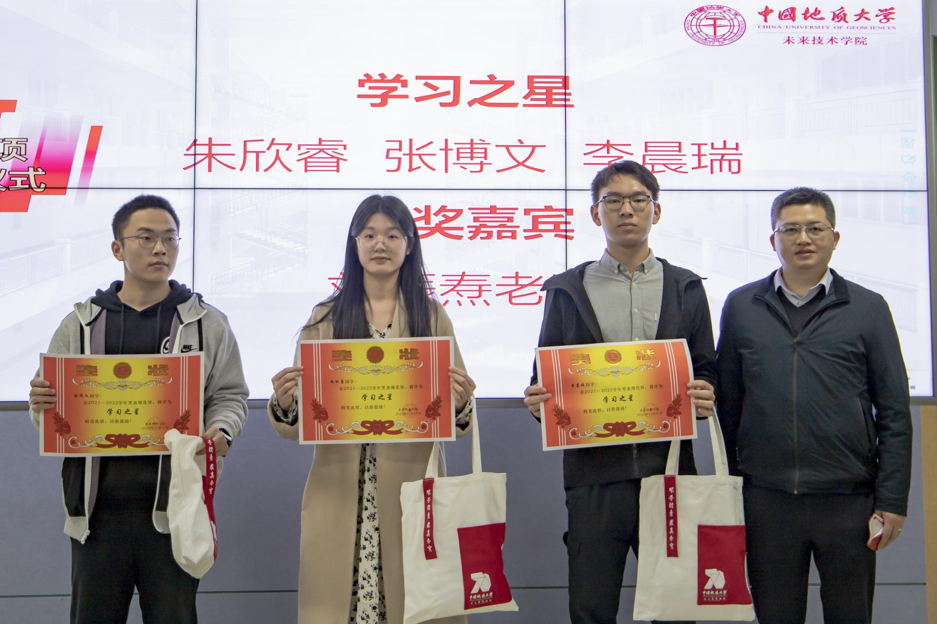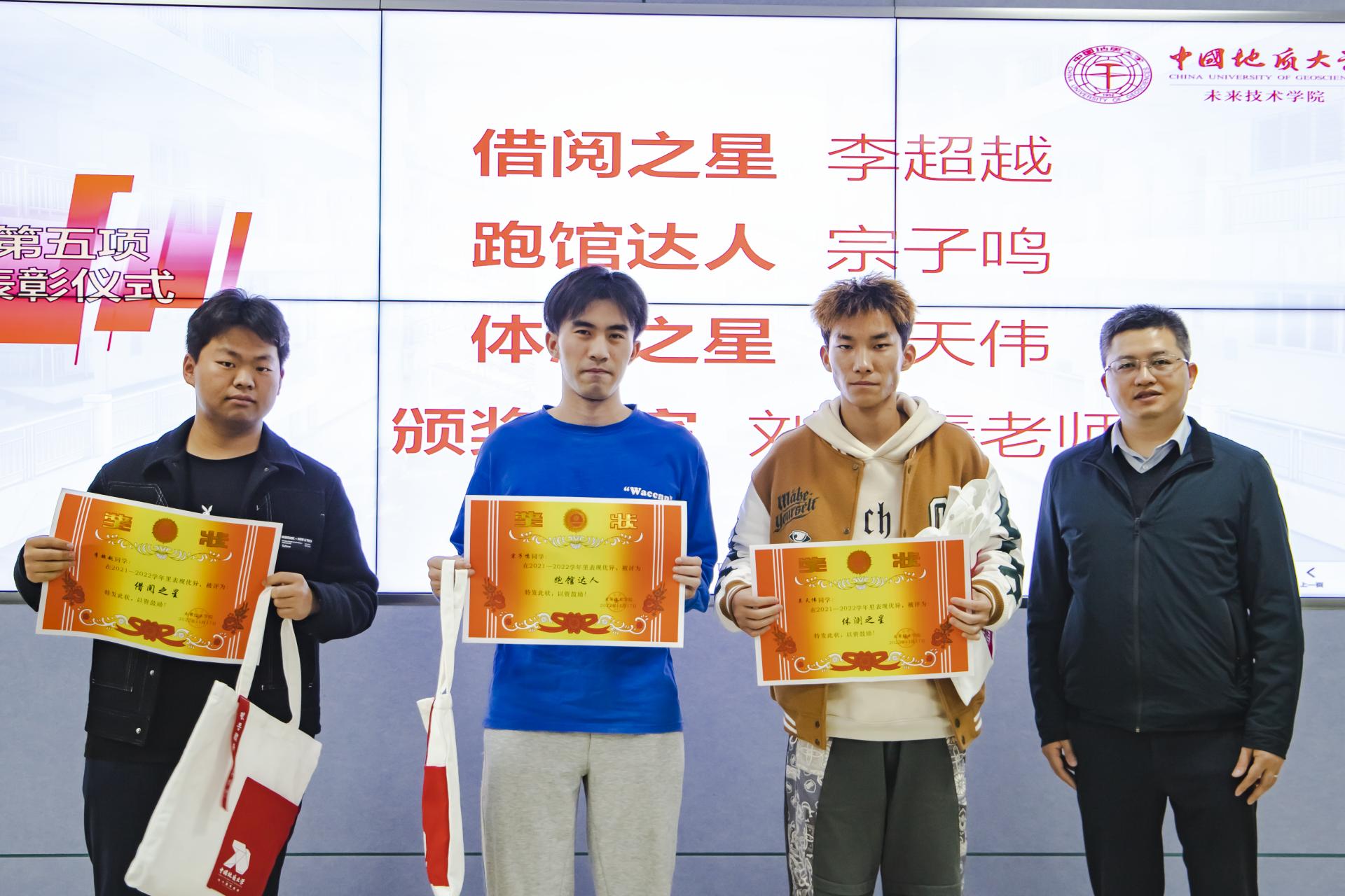 (班主任代表刘振焘老师为年度学习之星、借阅之星、跑馆达人、体测之星颁奖)