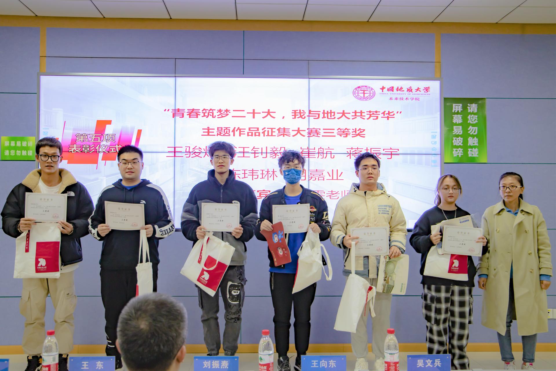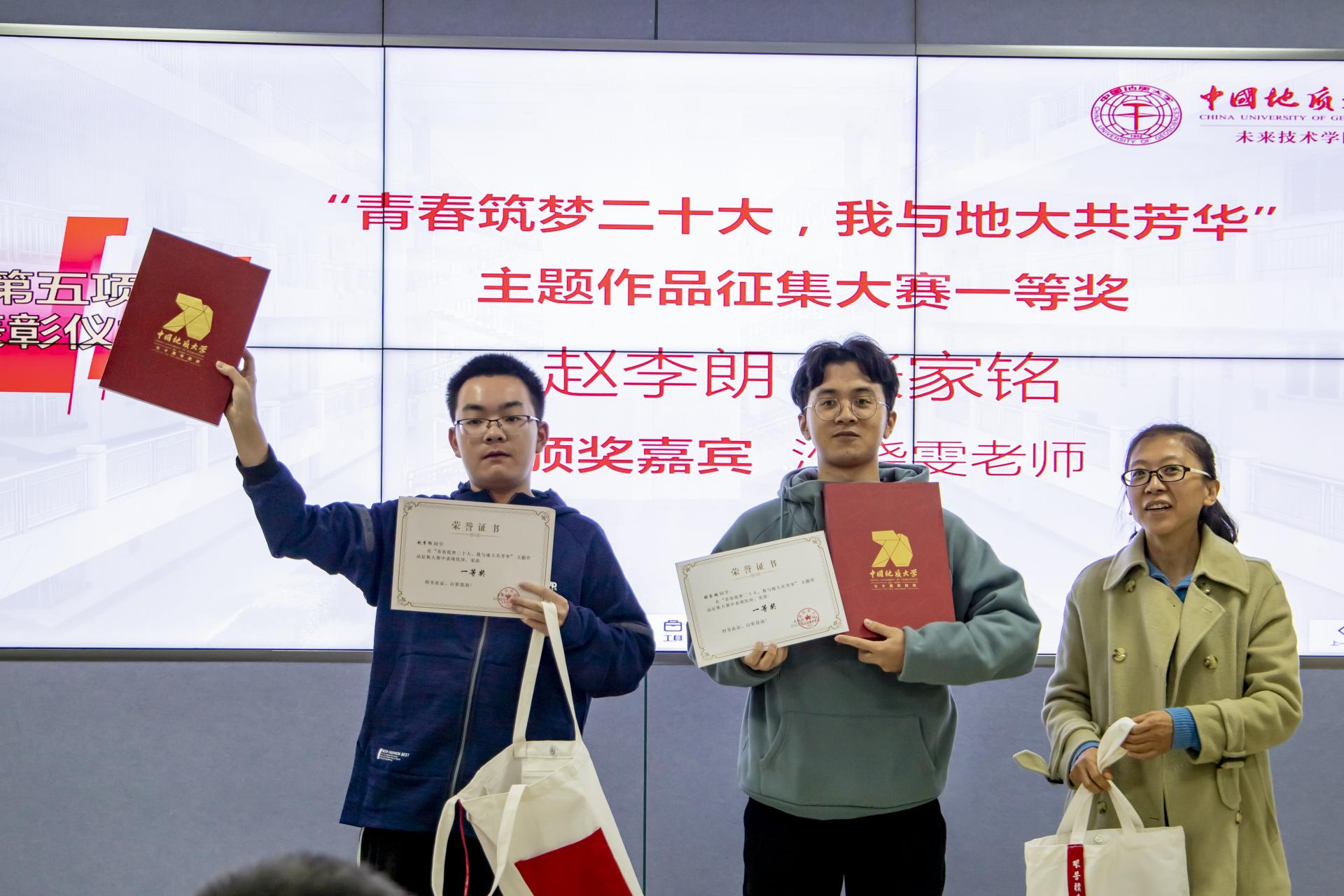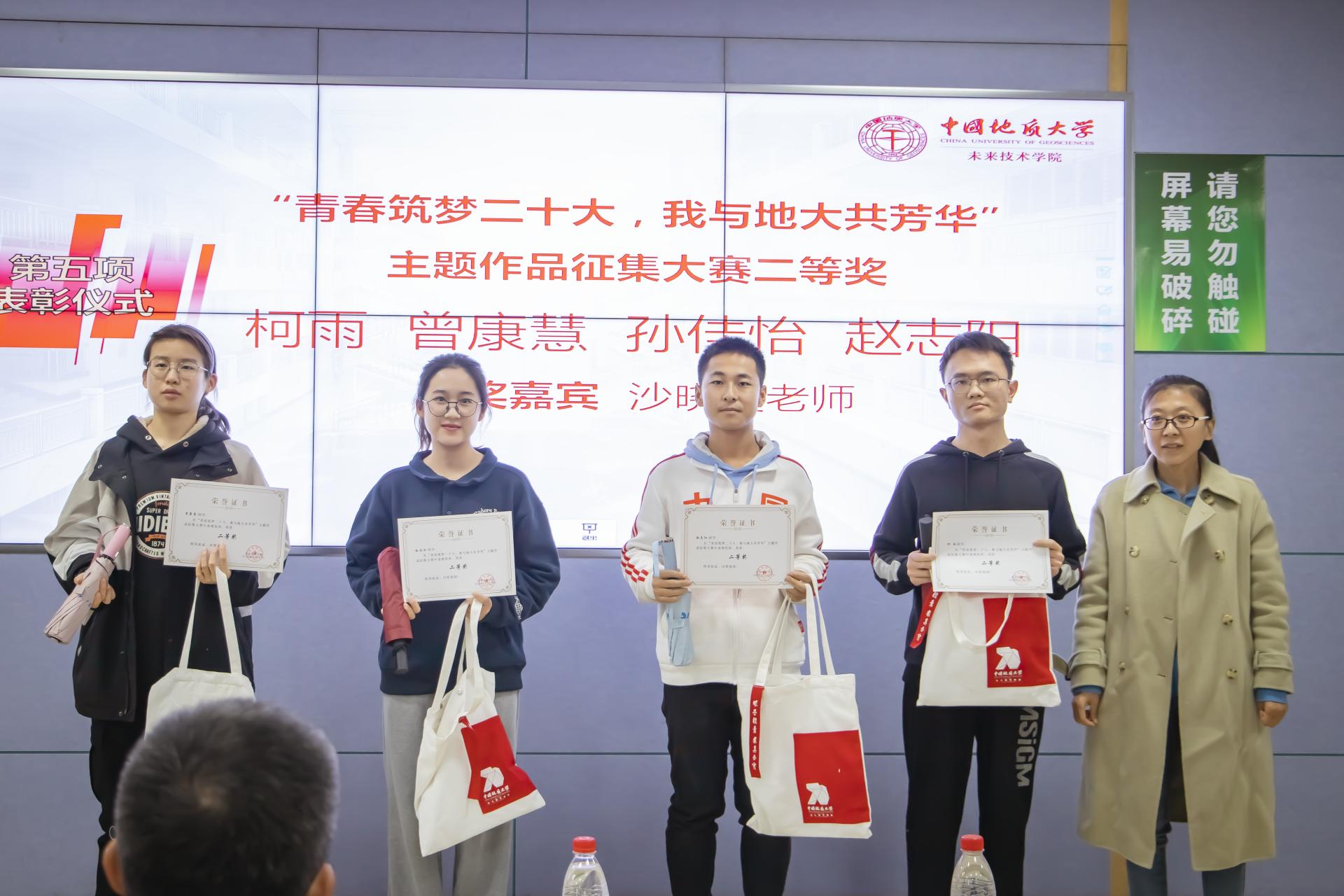(沙晓雯老师为“青春筑梦二十大,我与地大共芳华”主题作品征集大赛获奖员工颁奖)