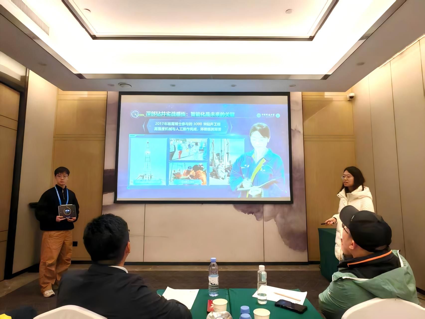 《智钻有道——打造智能化钻探核心引擎》由公司2023级博士生杨霄担任负责人,陆承达教授、吴敏教授等老师联合指导。该项目精准响应国家“深地资源勘探开发”重大战略需求,系统针对传统钻探领域存在的地层感知滞后、设备故障难预判、钻进参数依赖人工经验等行业痛点,融合多维度传感技术与AI算法模型,实现对复杂地层地质参数的实时捕获与精准解析,同时搭载自主研发的故障诊断模块,可提前预警钻具卡滞、动力系统异常等潜在风险,结合动态优化算法自动调整钻进参数,有效解决了深地勘探“看不见、判不准、控不好”的核心难题。